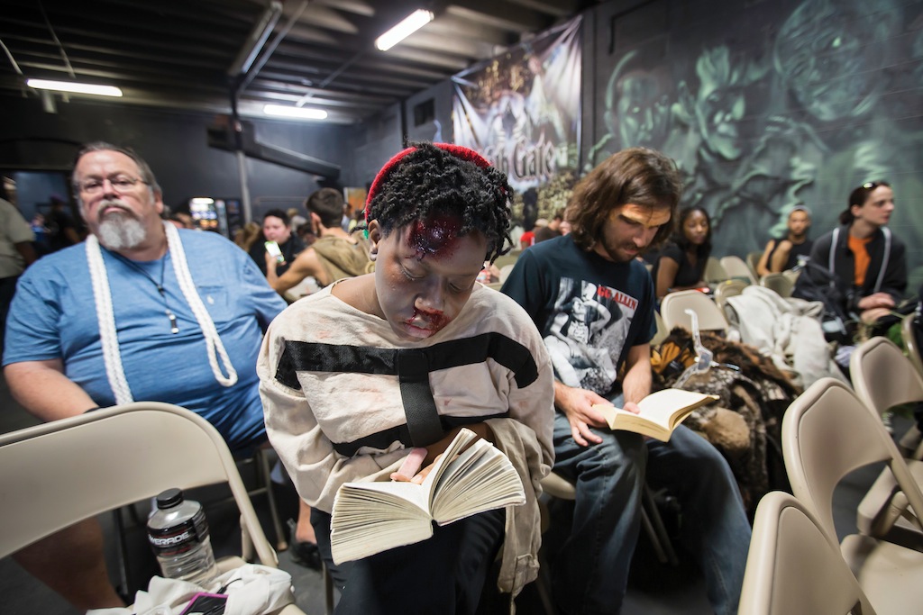 - Before it is time for 13th Gate Haunted House to open for the evening, actress Myesha McGarner, center, reads the Sister Souljah novel, “The Coldest Winter Ever.”