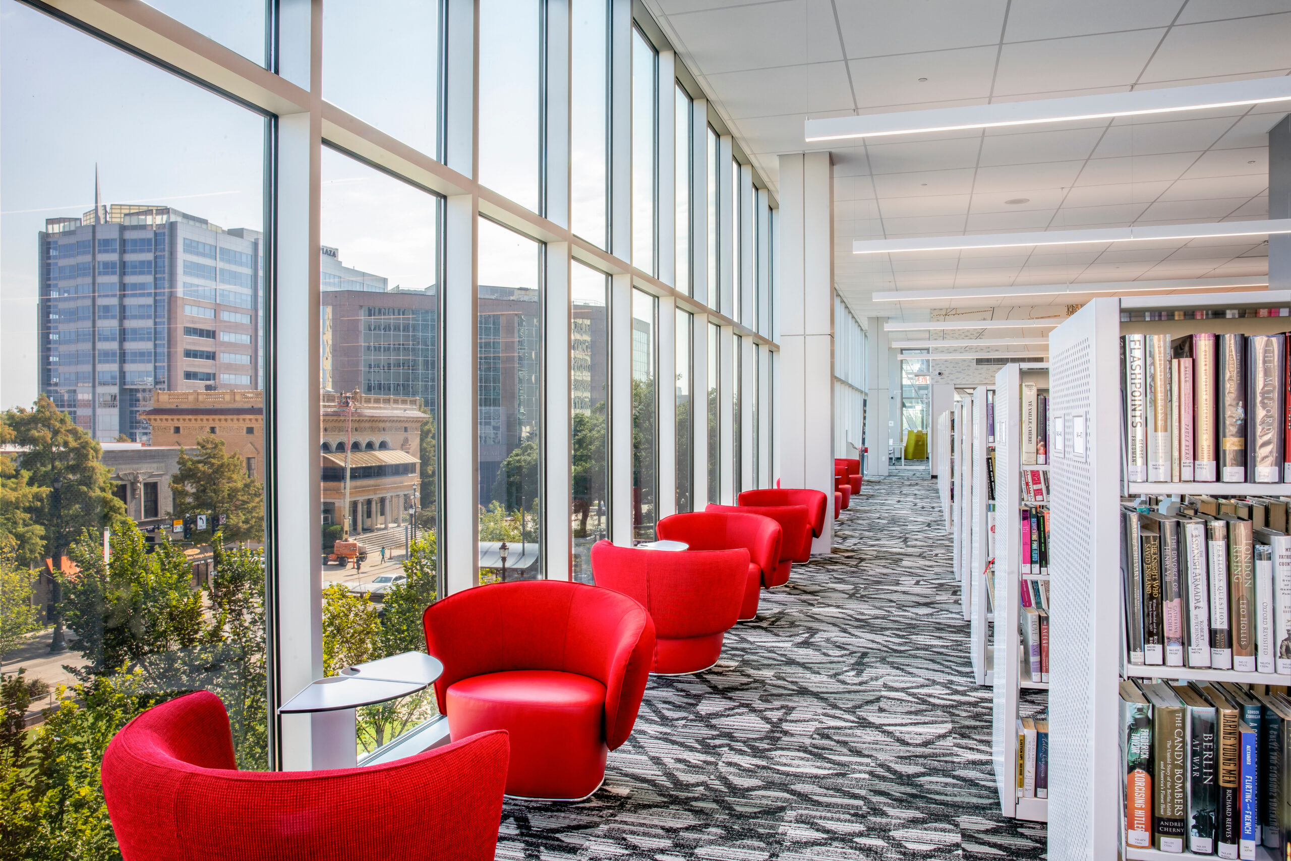 The library is in the heart of downtown Baton Rouge, a newly vibrant urban center featuring new restaurants, public parks, a town square, museums and a performing arts center. It was designed to create connections and opportunity.