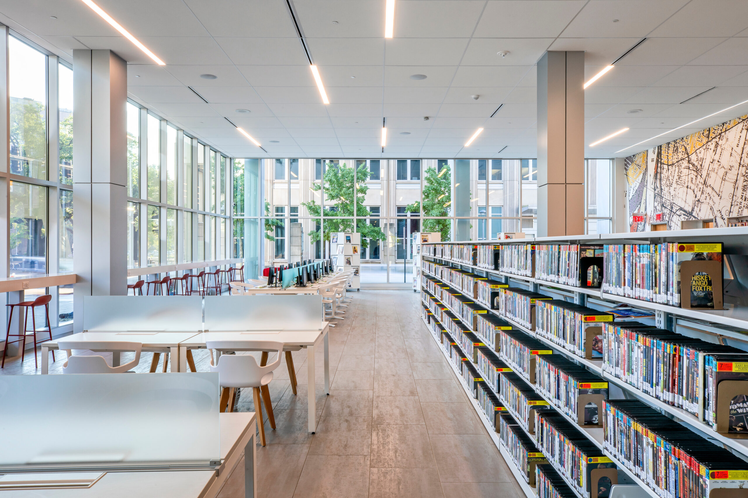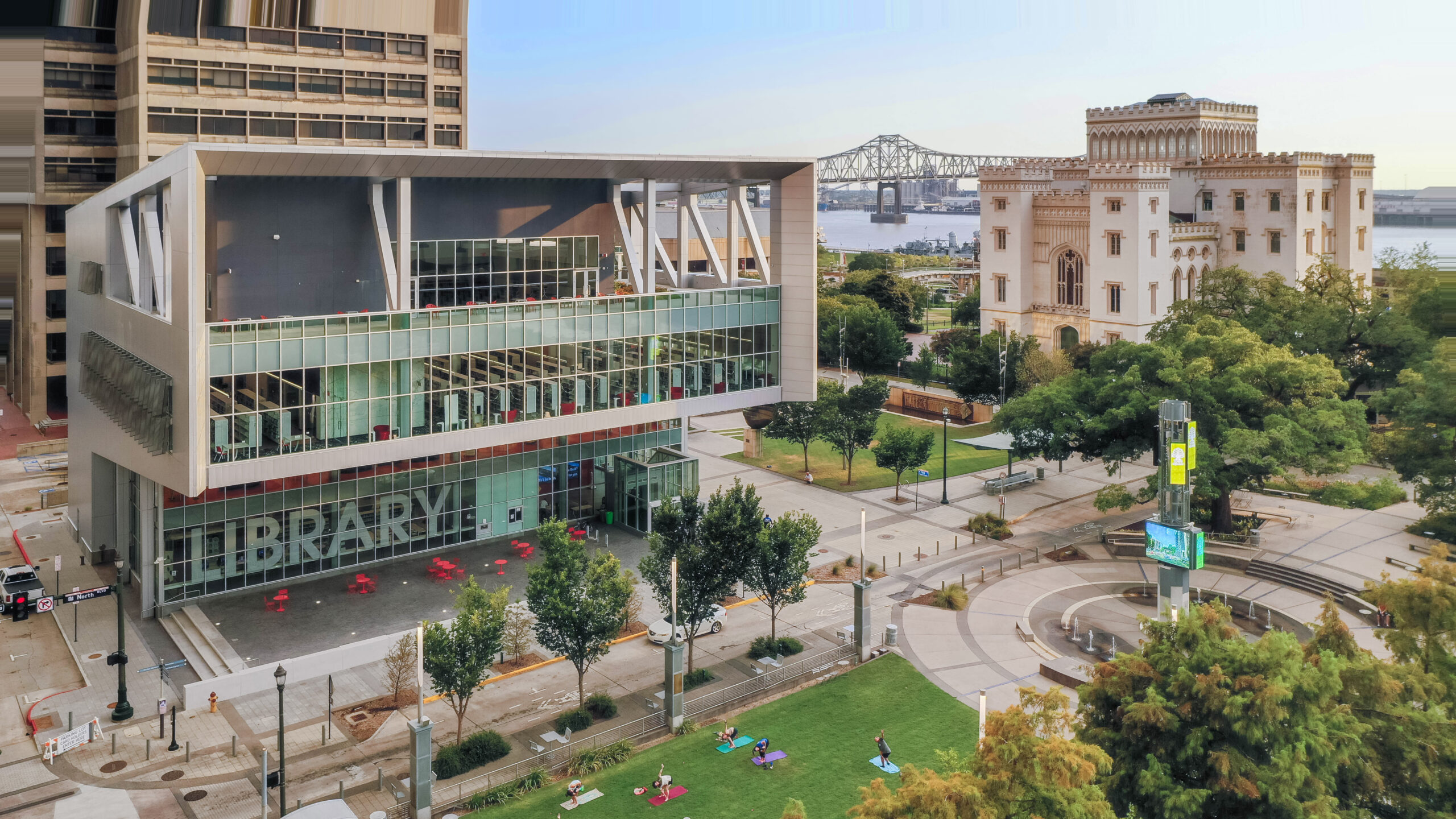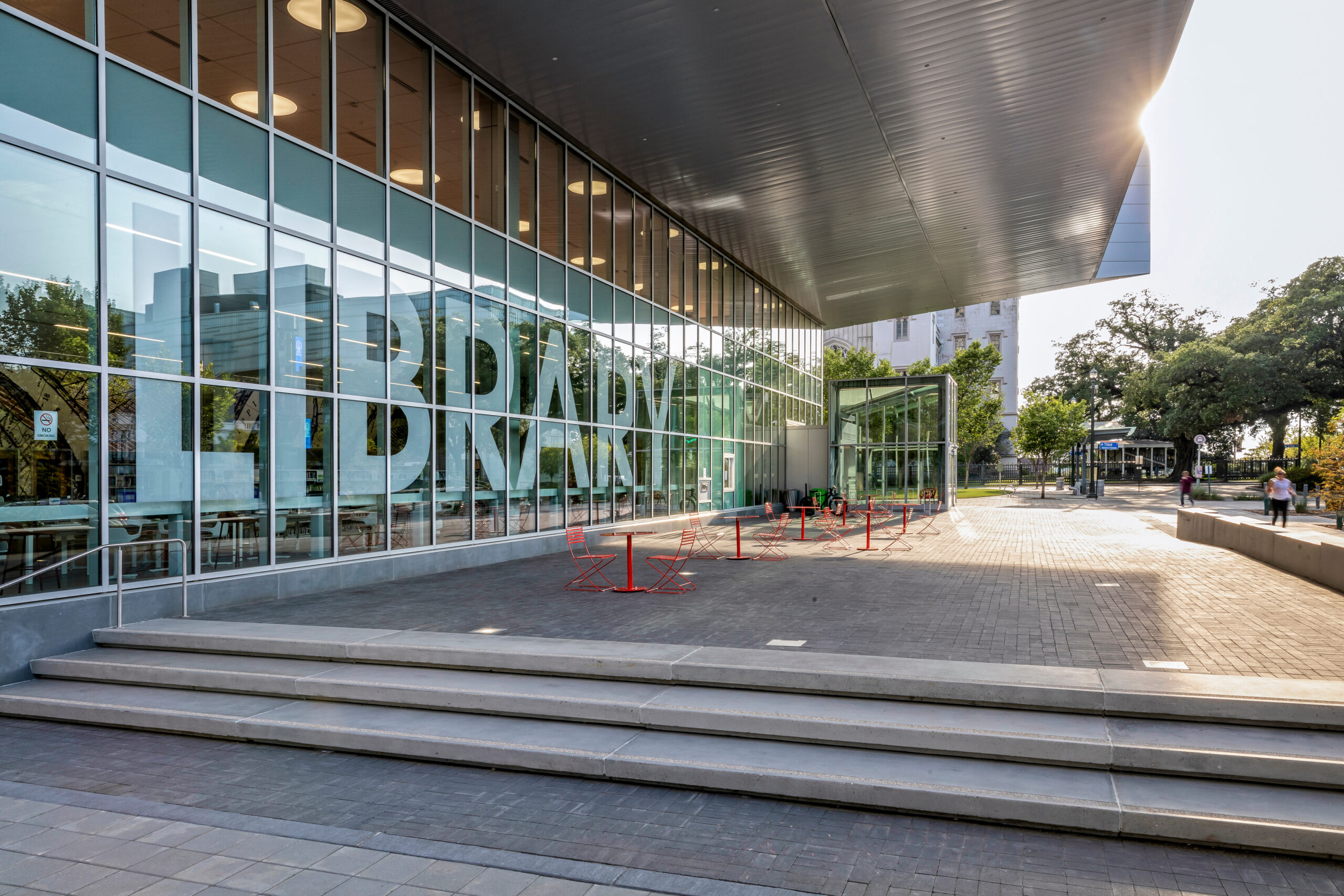 The library is in the heart of downtown Baton Rouge, a newly vibrant urban center featuring new restaurants, public parks, a town square, museums and a performing arts center. It was designed to create connections and opportunity.