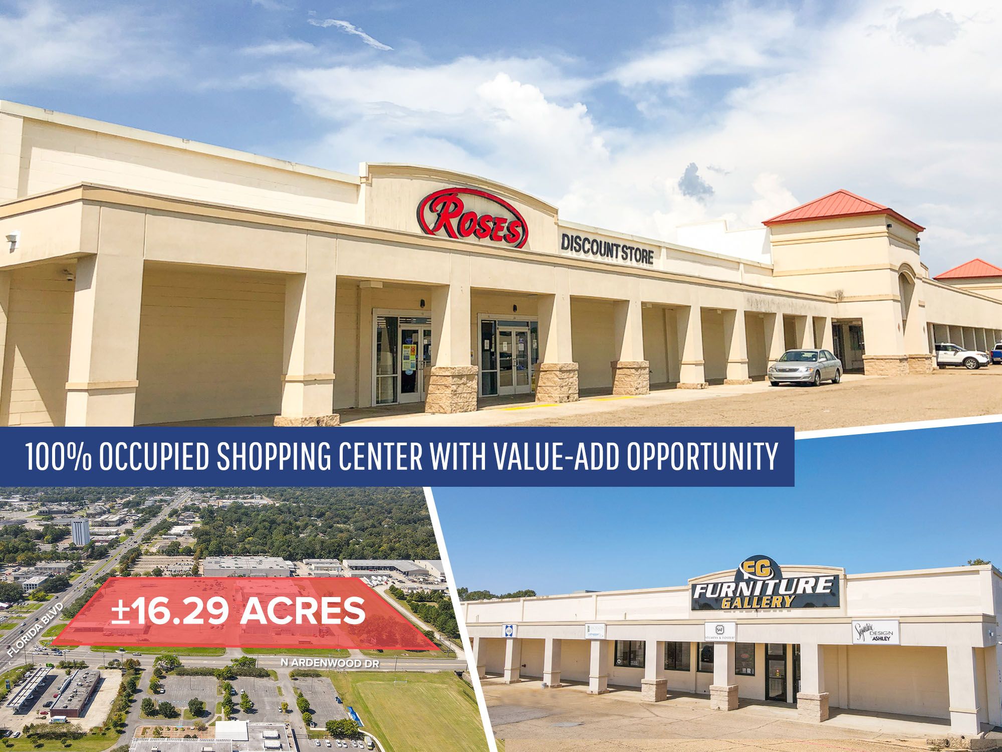 This exceptionally well-located shopping center on Florida Boulevard is 100% leased and offers an excellent opportunity for future development. Three tenants in the primary building—Roses Discount Store, Furniture Gallery, and a Flea Market user—each occupy 30,000+ square feet and have all signed new 5-year leases or renewed in 2020. Two of the outparcels fronting Florida Boulevard are also leased. The property has an additional 1.5 acres of undeveloped outparcels fronting Florida Boulevard and 3.3 acres of surplus land behind the center on Ardenwood Drive. The property is 16.29 acres total and sees 46,210 vehicles per day. Call Will at 255.659.8657 for details. View the listing here.