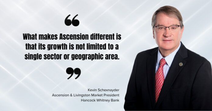 As industrial investment and population growth continue to reshape Ascension Parish, local banks are playing an increasingly critical role in supporting businesses and developers as they navigate that expansion. In this Q&A, Kevin Schexnayder, Ascension and Livingston market president for Hancock Whitney Bank, discusses trends in commercial lending, the parish’s economic trajectory, and how financial institutions are positioning themselves to meet rising demand across sectors—from industrial support services to residential and mixed-use development.