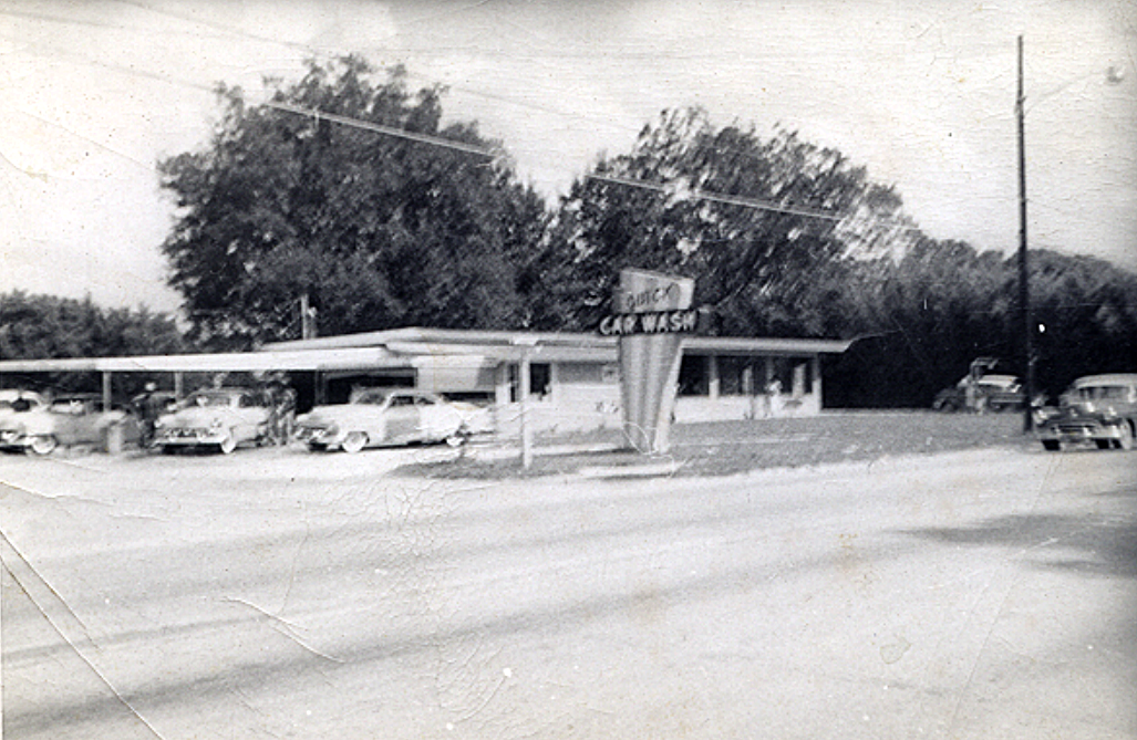 Makes history by opening the first modern express car wash at the Perkins Road location.