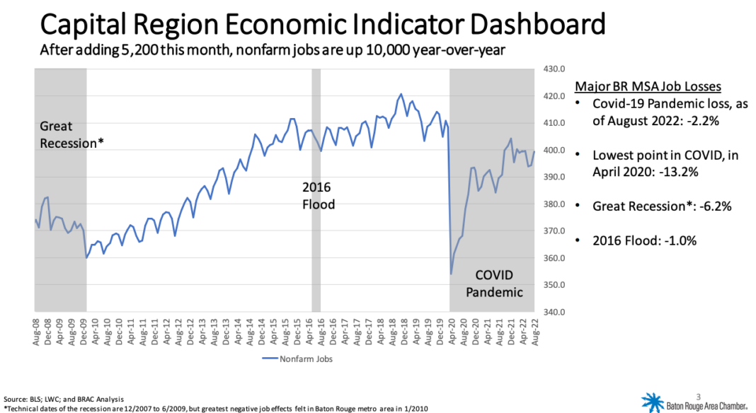 Thursday, October 13, 2022 Business BRAC: Capital Region adds 5,200 jobs in August By Daily Report Staff - October 13, 2022 FacebookXLinkedinEmailPrint Baton Rouge added 5,200 jobs in August, and jobs are up 10,000 year over year for the Capital Region. However, government hiring drove 70% of those new jobs, with education and health care making … Already an INSIDER? Sign in.