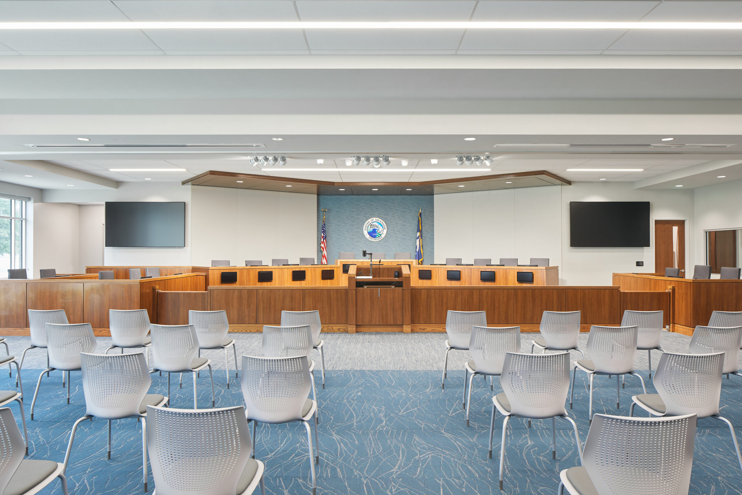 The spacious, state-of-the-art Ascension Parish Courthouse is designed to accommodate the current and future requirements of the Parish Court, the Judicial District Court and Parish Council. The new structure also houses the Clerk of Court, Sheriff’s Department and Judges’ Chambers.