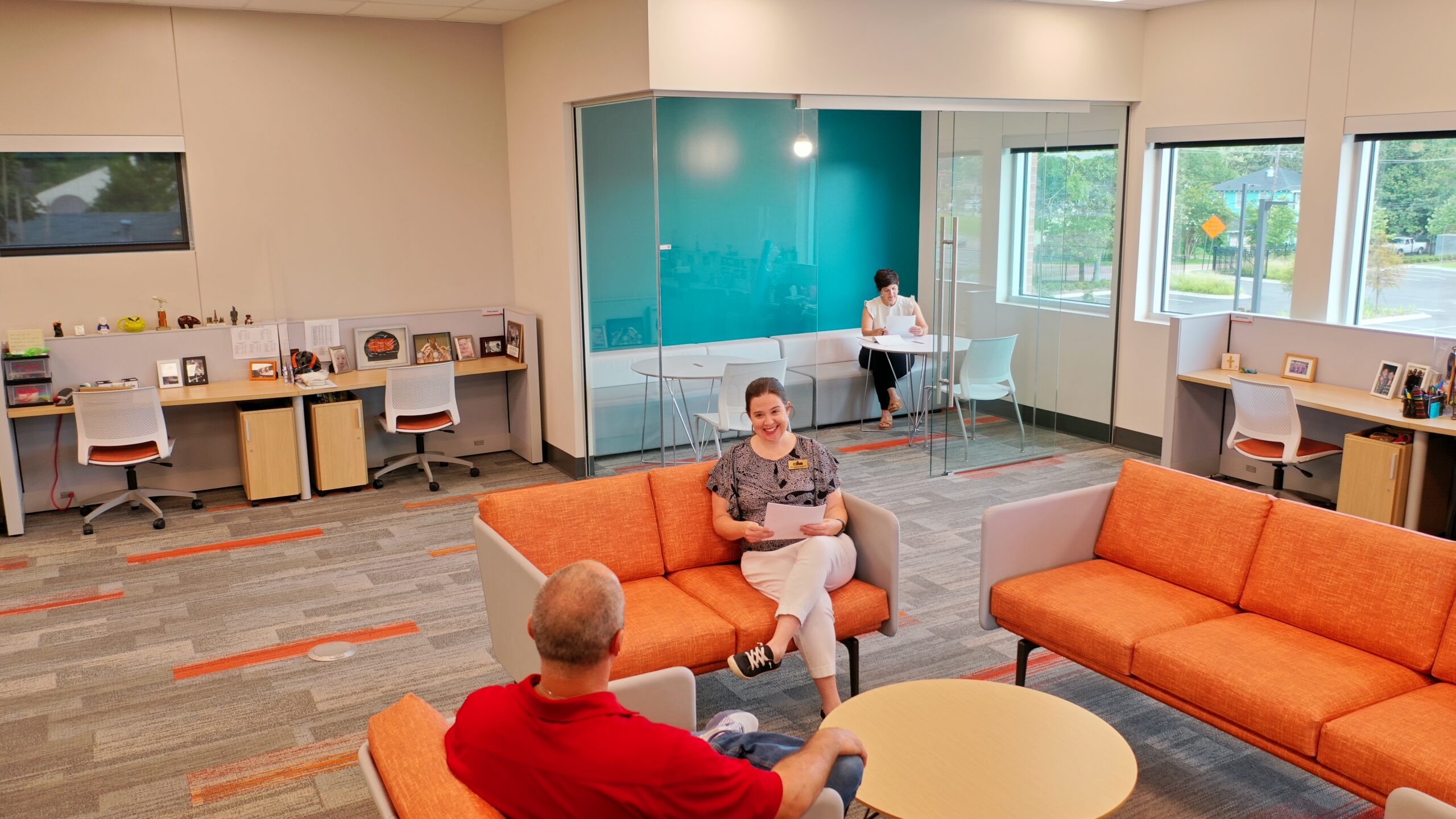 - The space is zoned so faculty can choose quiet areas for focused work or common areas for social interaction.