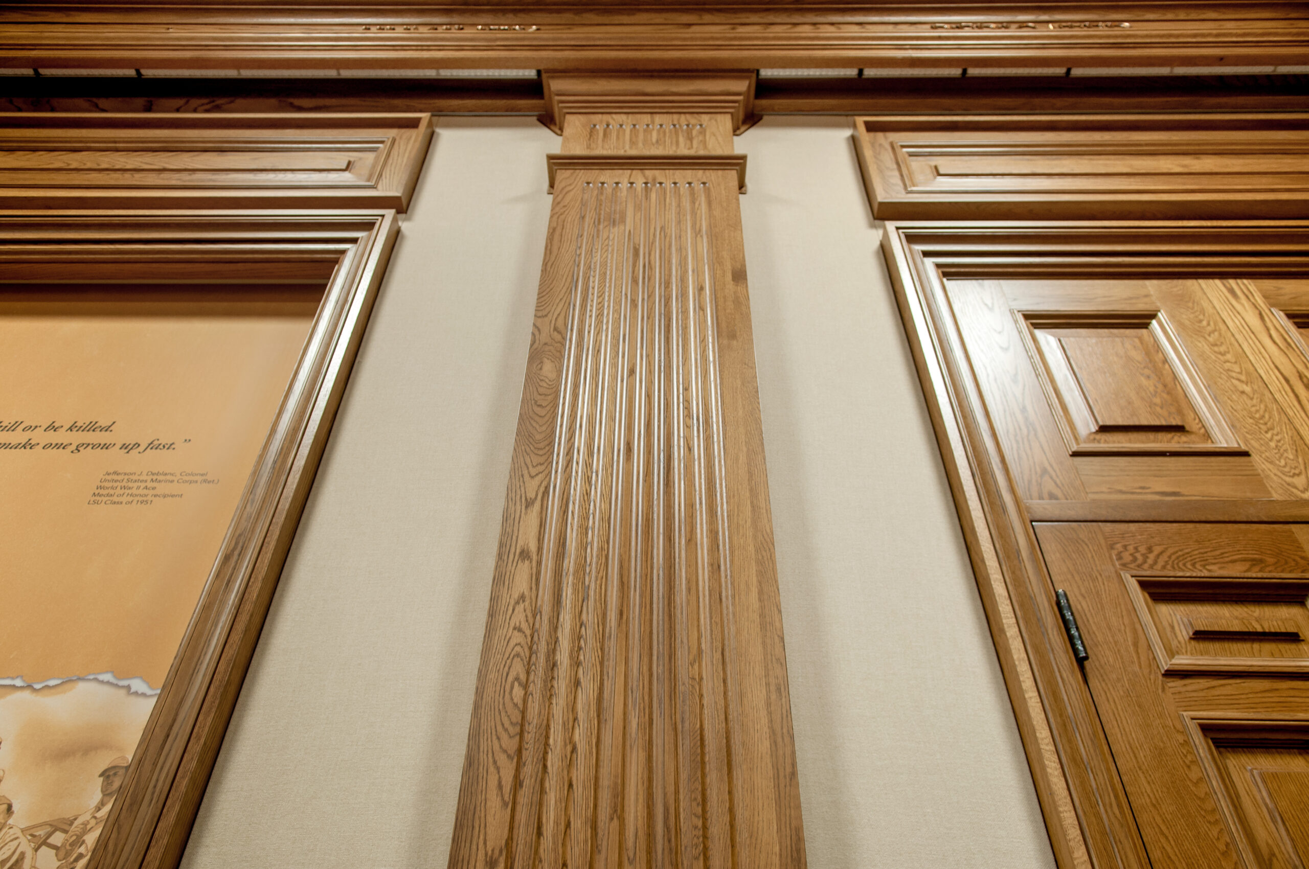 As with the attention to detail of the plaster entablature, the original drawings illustrated ornate details throughout the building—including white plaster pilasters between each window, ceiling medallions and wood pocket doors, to name a few. Each of these were meticulously reconstructed with white oak to honor the original design intent.