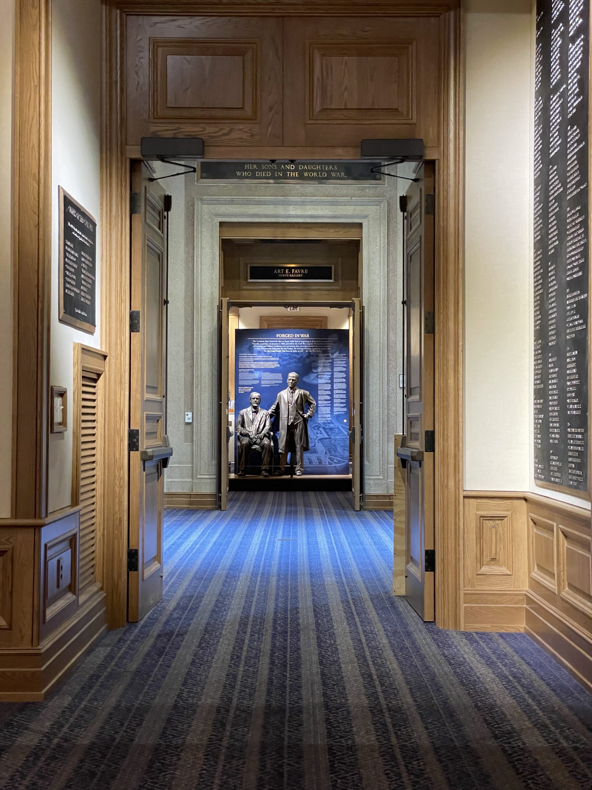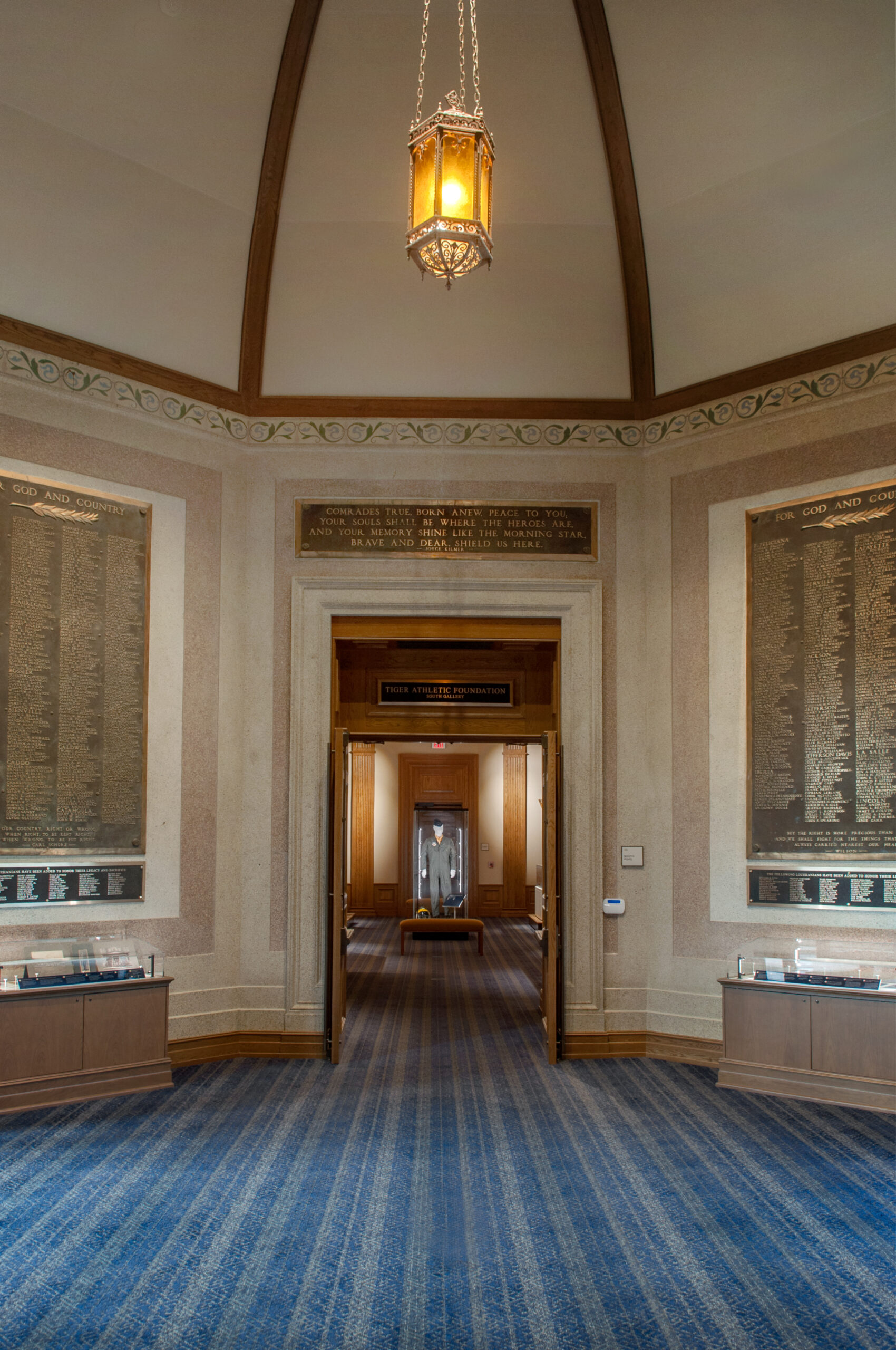Original bronze plaques can be found on the rotunda walls, bearing the names of those who gave their lives in, as one plaque states, “The Great War,” as it was constructed prior to WWII.