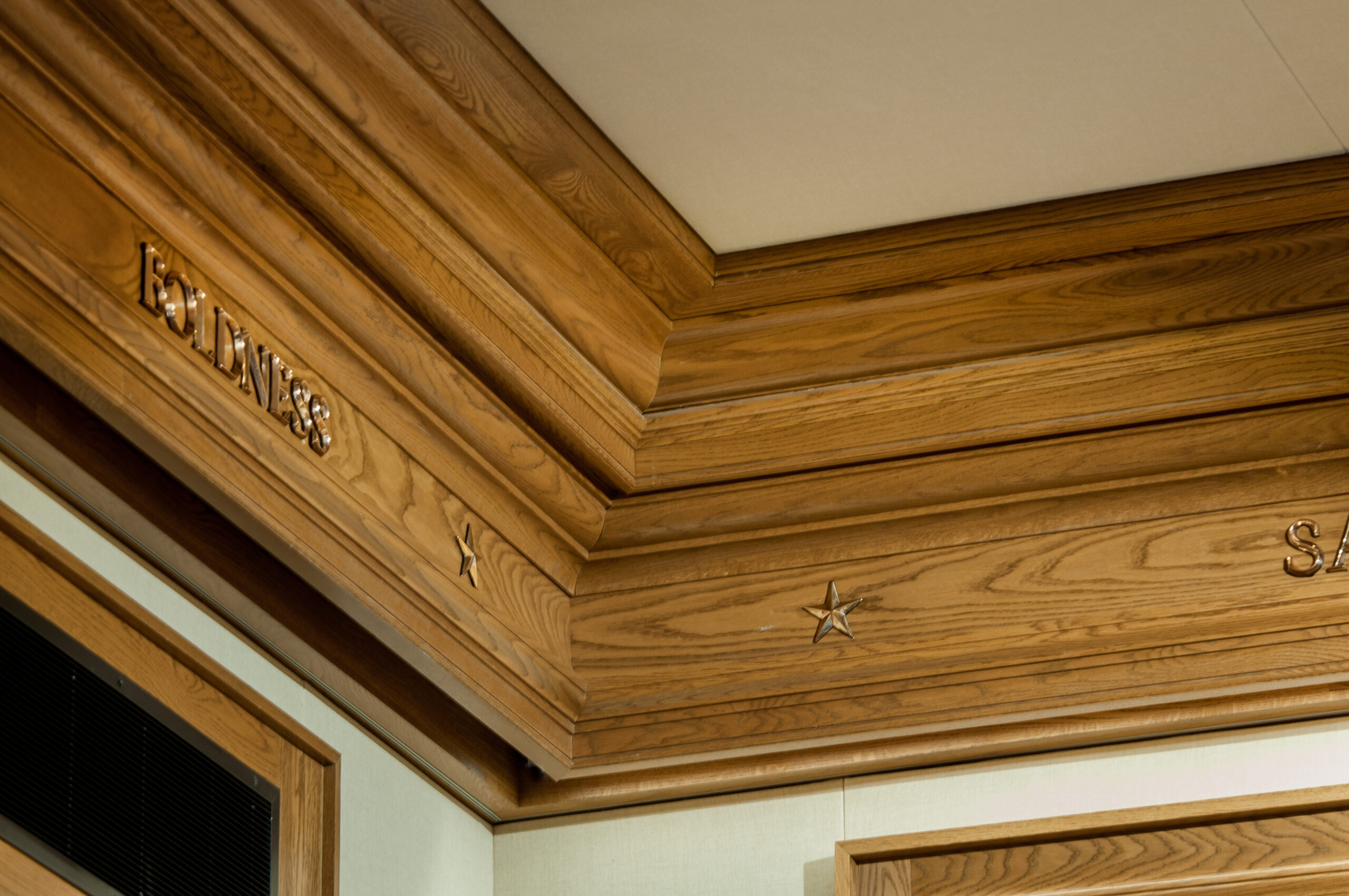 - Remnants of the building’s original plaster entablature were discovered and documented to guide in the design of a new wood entablature that would serve modern needs, while adding warmth to the space.
