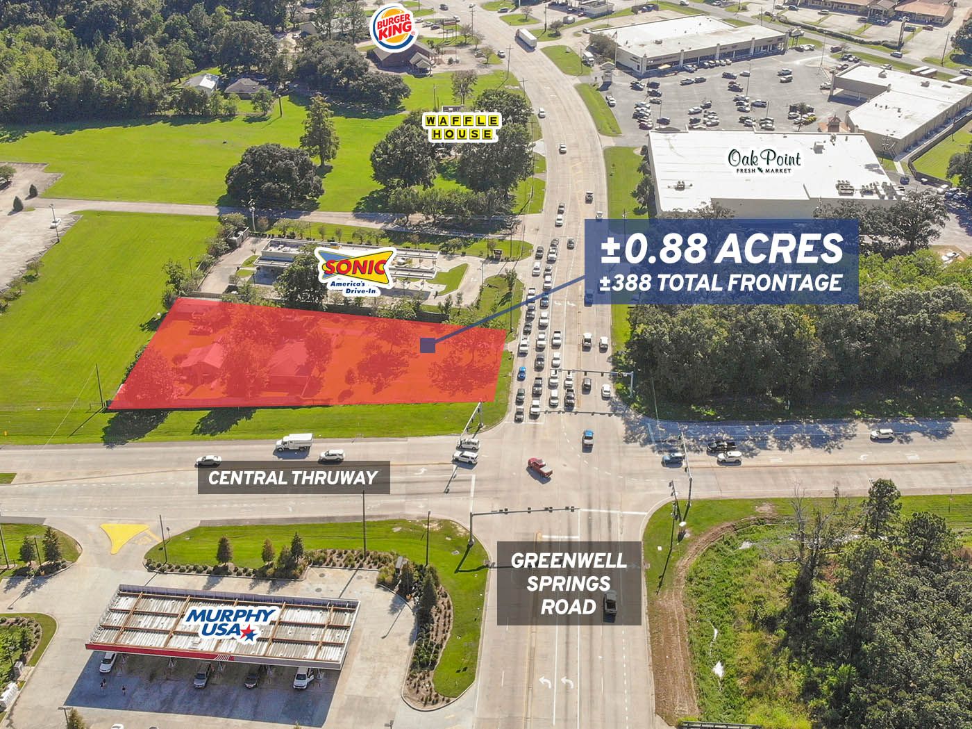 This .88-acre property is located on the signalized hard corner of Central Thruway and Greenwell Springs Road, and the asking price has recently been reduced by $50,000. With busy commuter traffic, this corner sees approximately 30,000 vehicles per day and is surrounded by new and established retailers, including Oak Point Fresh Market, Sonic, Pizza Hut, Waffle House, Burger King, Snap Fitness, Walgreens, Murphy Express and others. The property boasts 388 feet of combined frontage with dual access possibilities and full utilities. Call Will Chadwick for more details at 225.659.8657. View the listing here.