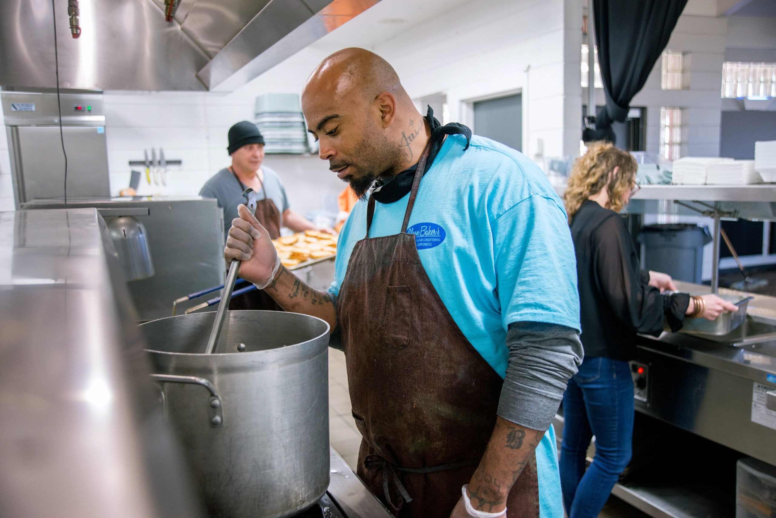 During the first few weeks of a man’s stay, the staff works to obtain proper credentials so he can obtain work. Many of the men enter the program without any form of identification, birth certificate, or social security card. Some are still battling addiction, Stermer says. Those initial weeks allow the men to receive rest, professional counseling, basic life skills, job training, and job safety training, along with proper clothing and safety supplies.